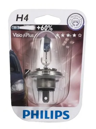 Ви можете придбати у нашому магазині Лампа розжарювання H4VisionPlus12V 60/55W P43t-38 (вир-во Philips)